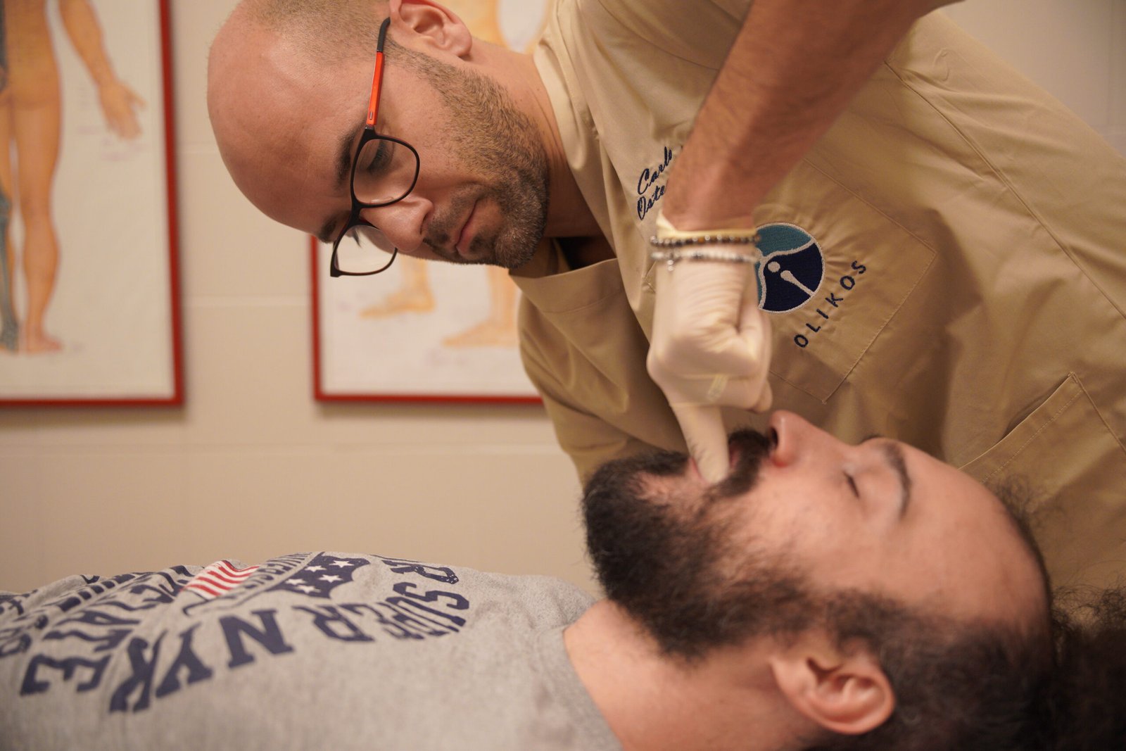 Carlo ha conseguito un master specifico sull’approccio stomatognatico-osteopatico integrato presso formazione avanzata focalizzata su lingua, deglutizione atipica e ortodonzie in età evolutiva. Panos integra questa visione con la sua esperienza in posturologia, analizzando come l’ATM (articolazione temporo-mandibolare) influenzi i recettori posturali. L’approccio Olikos è unico perché collabora attivamente con dentisti, ortodontisti e logopedisti del territorio: l’osteopata non sostituisce l’odontoiatra ma integra il suo lavoro rendendo i trattamenti ortodontici più efficaci, veloci e stabili nel tempo.